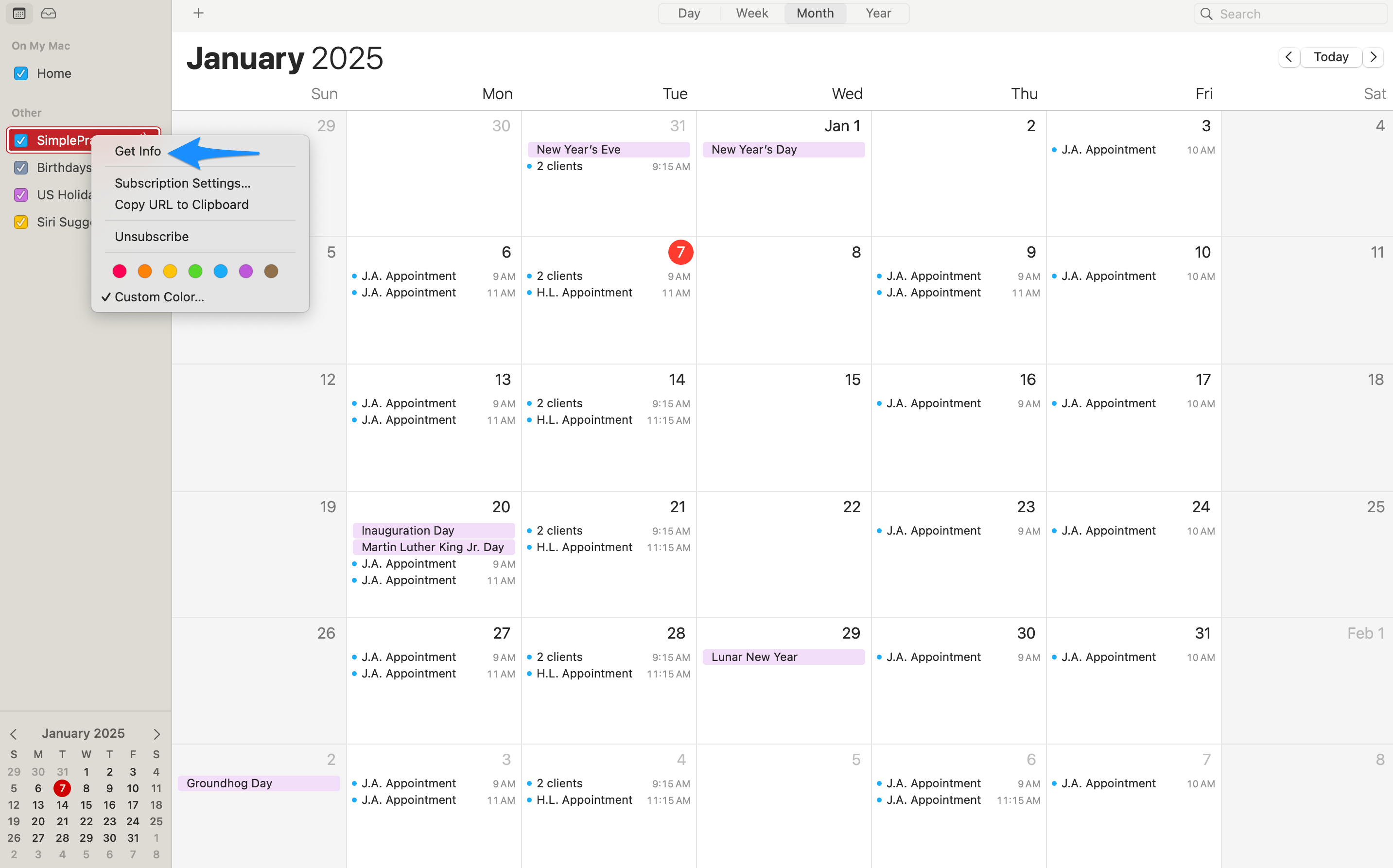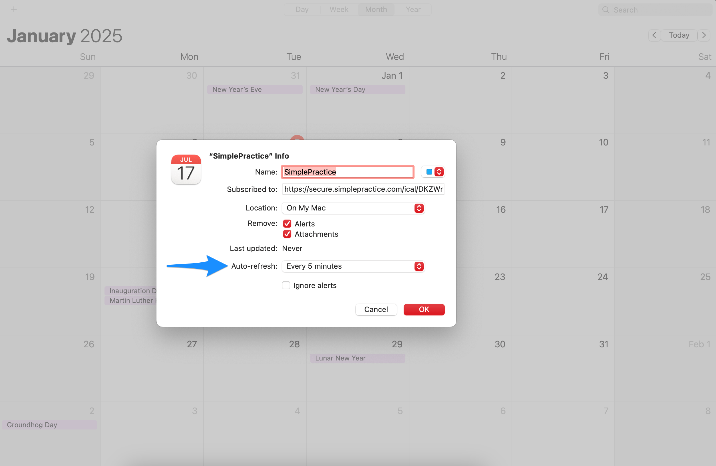 Managing calendar sync for Apple Calendar SimplePractice Support