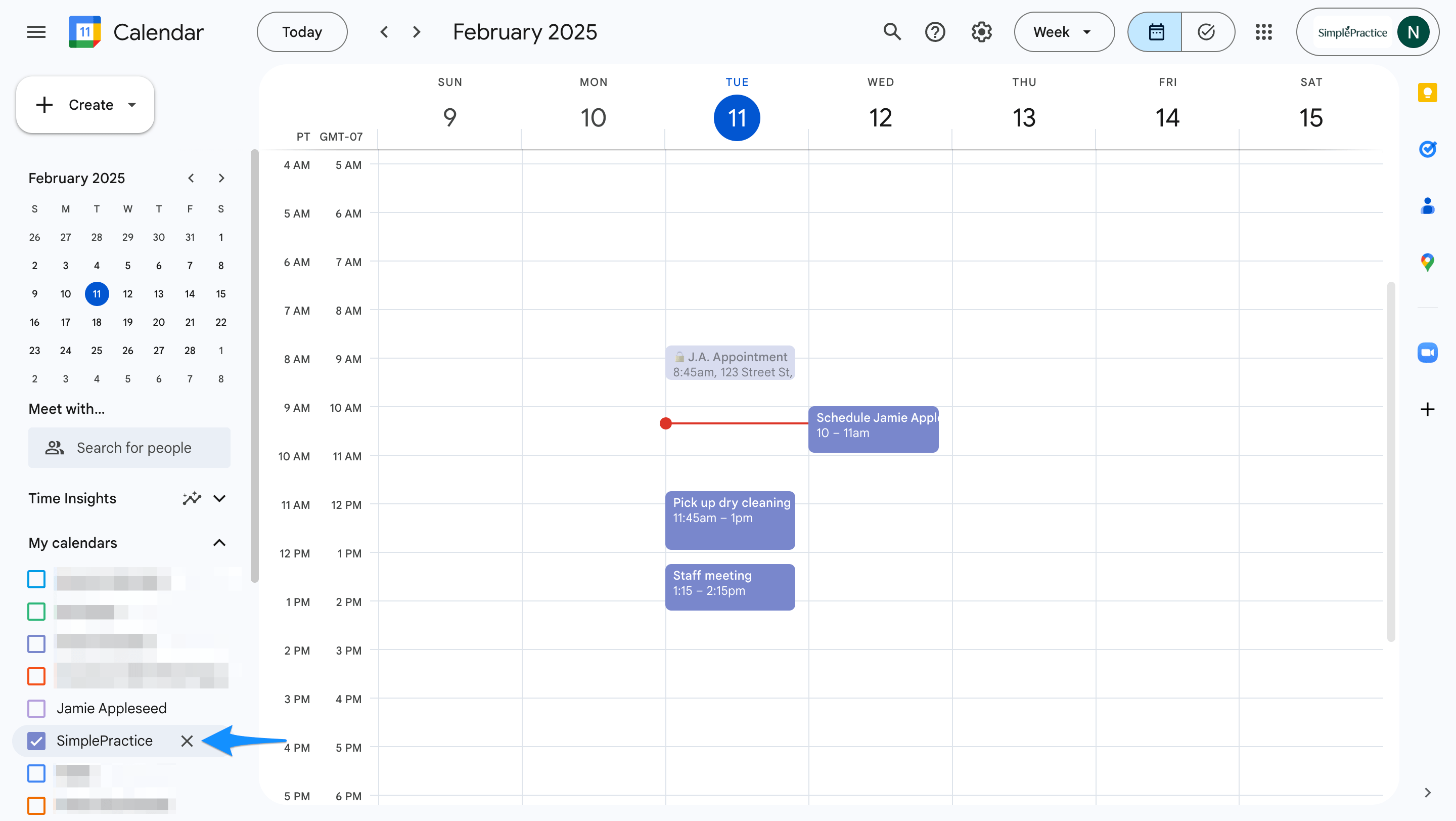 Managing calendar sync for Google Calendar SimplePractice Support