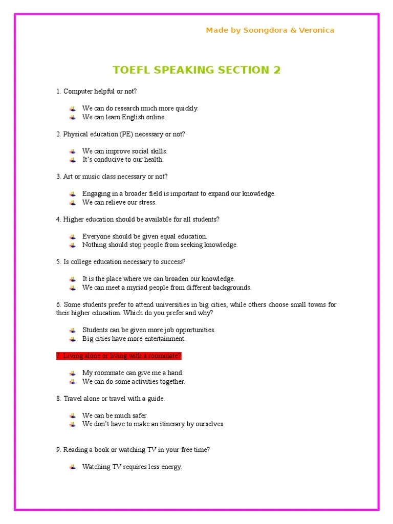 Toefl Ibt Speaking Task 2 Sample Questions Printable Templates Free