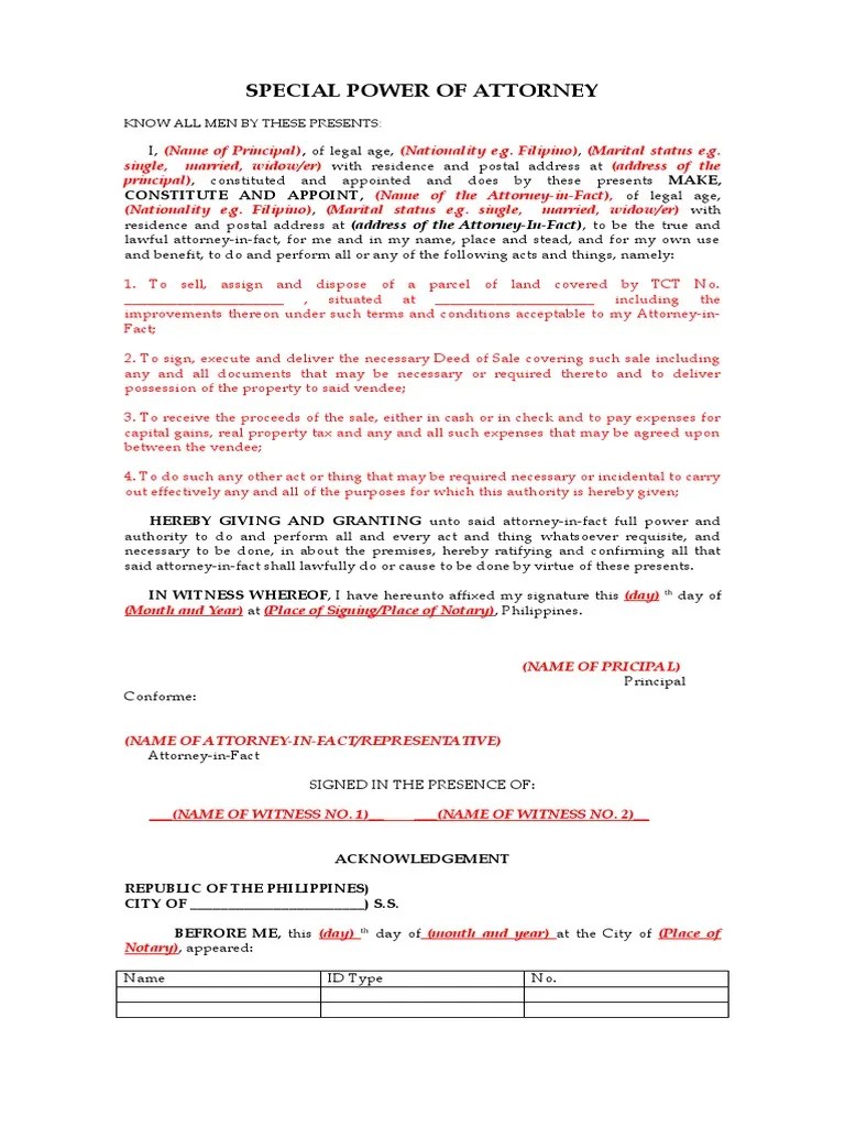 Special Power Of Attorney Sample Template Free Download, 46 OFF