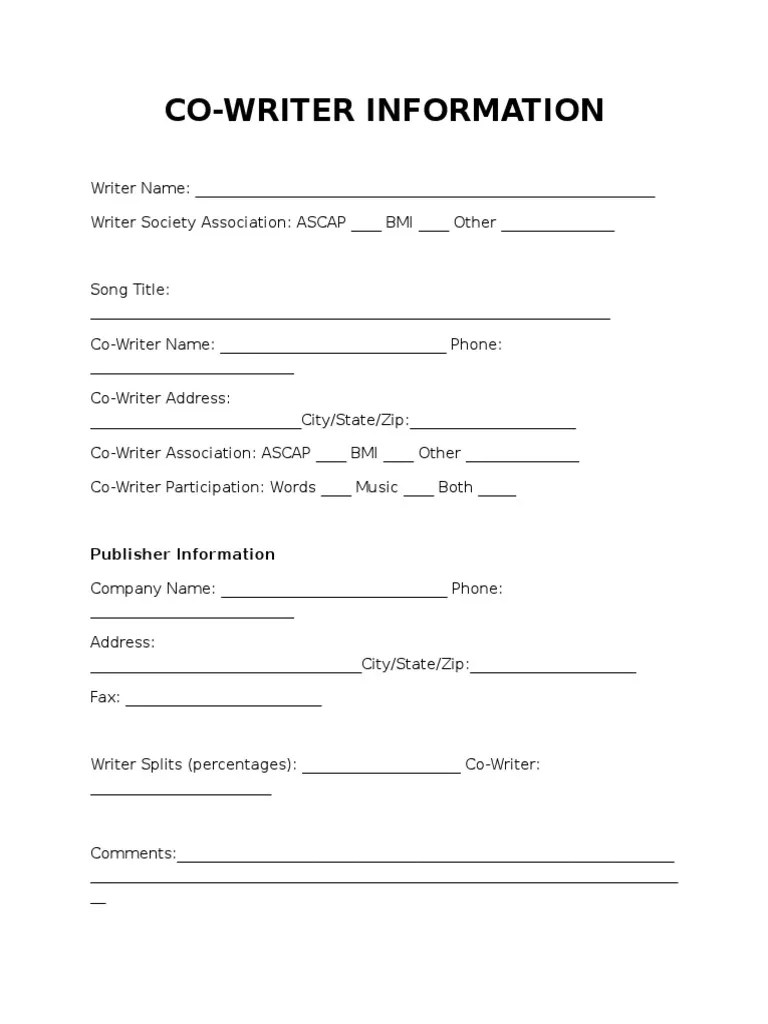 Song Split Sheet Music Publishing printable pdf download