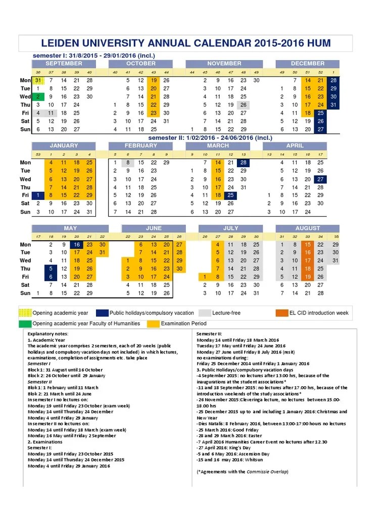 Leiden University Academic Calendar Lelah Natasha
