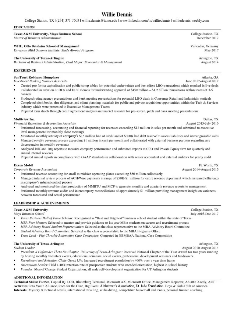 Willie Dennis Resume Tamu PDF Leveraged Buyout Banks