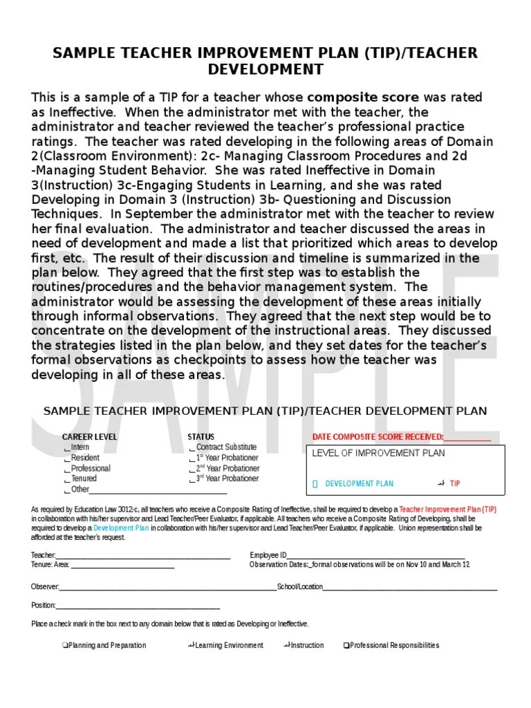 Do you need a teacher performance improvement plan but don’t where to start? Help the underperforming teachers in your organization by implementing a teaching improvement plan. When the appr finds a teacher to have unsatisfactory performance, this sample teacher improvement plan can come in handy. This document provides guidance and a template for educators with professional teacher status who have.