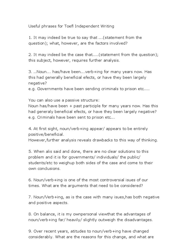 Web in this section, we offer you a toefl integrated writing template and an independent. How to structure your toefl independent writing task essay?. A detailed master guide to the independent essay task. Web toefl essay templates can help you answer both of the toefl writing questions. Web complete templates for each essay task.
