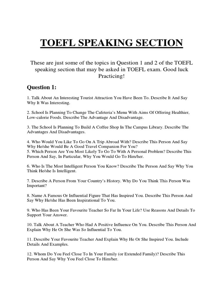 Practicing toefl speaking questions is more effective with a template. Master the toefl speaking section with toefl speaking templates, strategies & examples. Use this free template and the suggested vocabulary to ace toefl speaking question. Find out the types of tasks, the scoring system, and six sample templates with expert tips.