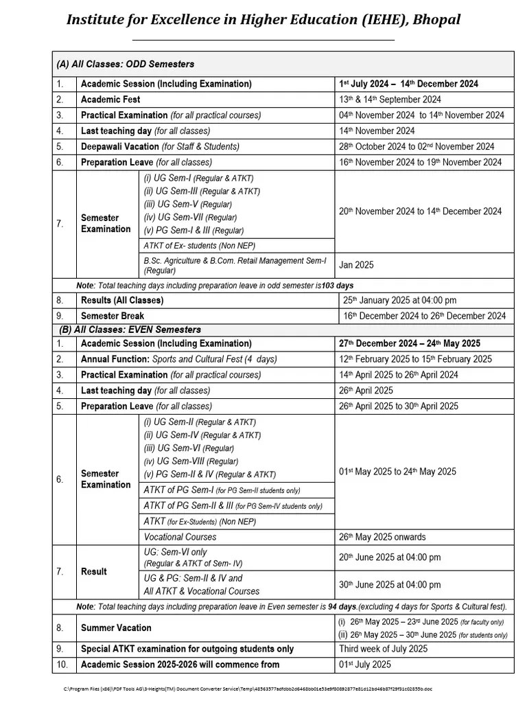 Academic Calendar 202425 Nit Jamshedpur Nerti Phillida