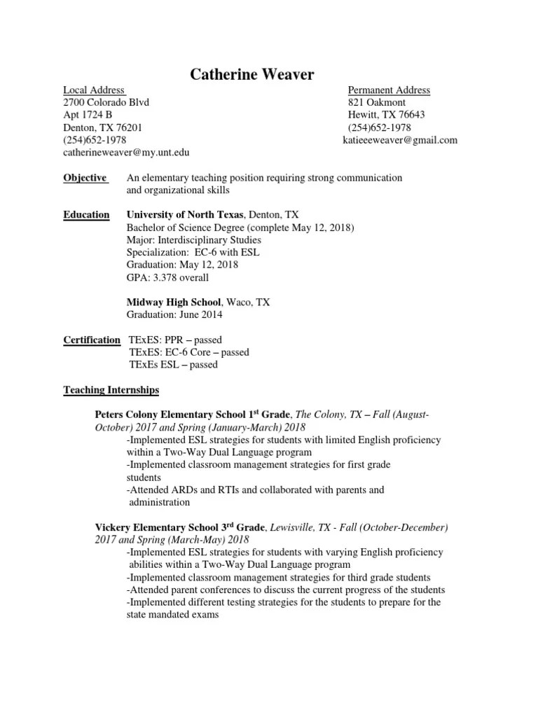 Unt Resume PDF English As A Second Or Foreign Language Change