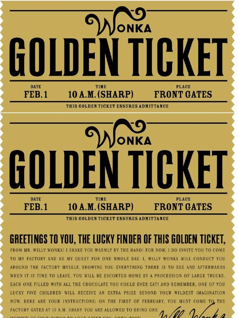 Web this free golden ticket template is designed the same way as willy wonka and the polar express golden ticket. Golden ticket invitations printable willy wonka invitations willy wonka birthday party charlie and the. Web if you are planning to organize an event, movies or musical theater and looking for a willy wonka golden ticket. Web complete wonka golden ticket.