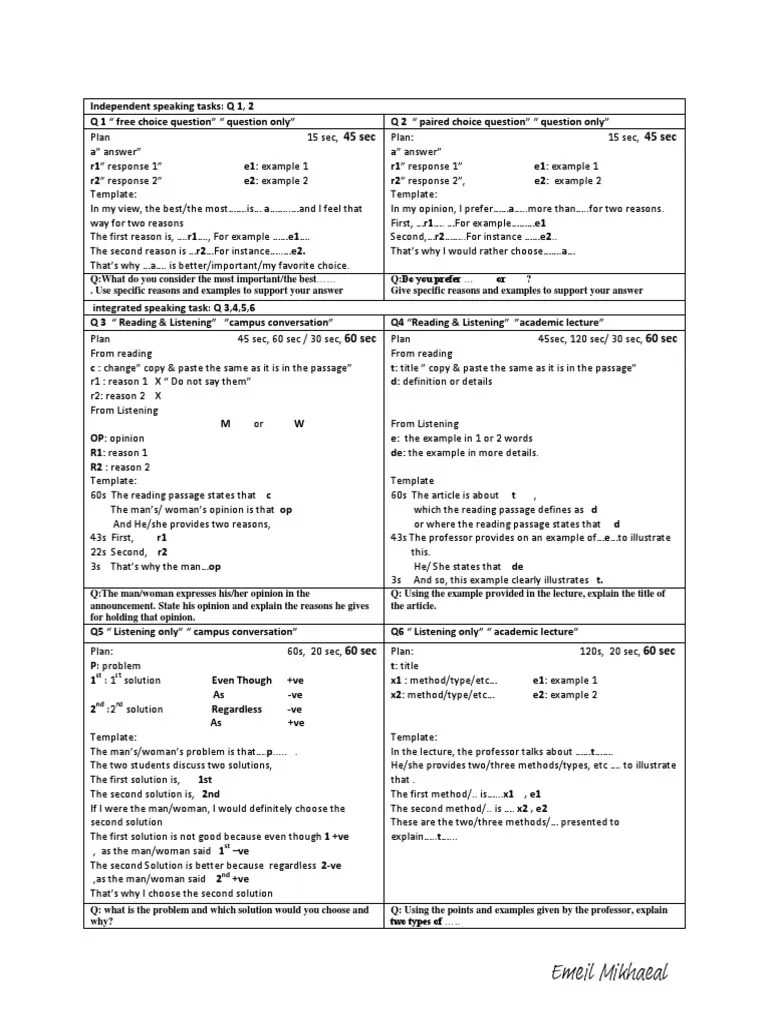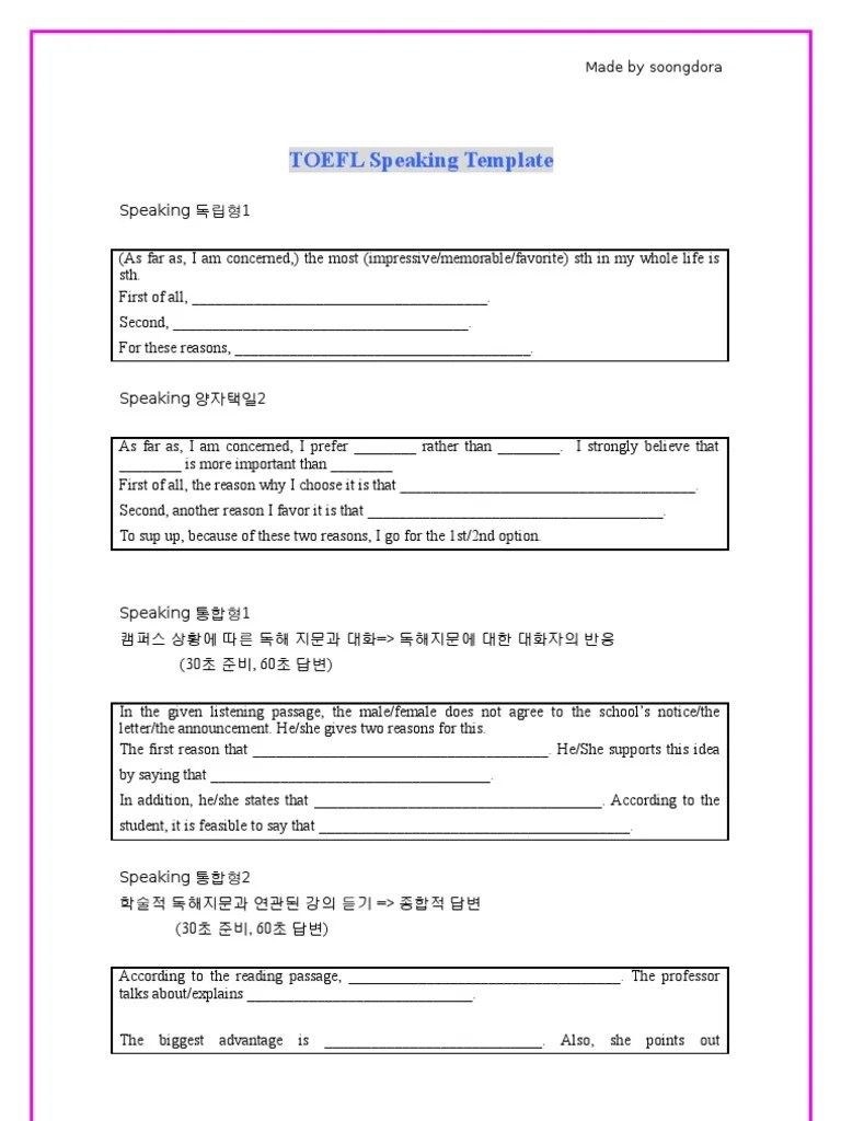 TOEFL Speaking Template